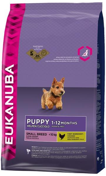 Eukanuba Growing Puppy Small Breed Chicken 3kg - Termékleírás Rengeteg friss csirkehús az igényes kis négylábúaknak: az Eukanuba Growing Puppy Small Breed, Chicken finom ízével és kiegyensúlyozott receptúrájával kényezteti a kölyökkutyákat - tökéletes a mindennapi etetéshez. A száraztáp a kistestű kölyökkutyák táplálkozási igényeihez igazodik. Az Eukanuba Puppy Smal