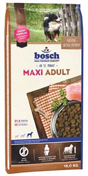 BOSCH Adult Maxi Poultry 15 kg - Termékleírás A Bosch Maxi Adult ideális eledel 25 kg feletti felnőtt kutyák számára, baromfival. A nagytestű kutyák hajlamosak a túlsúlyra, és könnyen emészthető, optimális energiatartalmú eledelre van szükségük. A Bosch Maxi Adult válogatott összetevőkből áll, amelyeket kíméletesen feldolgoztak, hogy megőrizzék finom ízüket és kiv