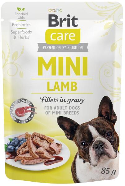 Brit Care Mini Lamb fillets in gravy – Apróra vágott bárányhús darabok szószban Valódi húsdarabok ízletes szószban, a száraz eledel ideális kibővítéséhez, kis- és apró termetű válogatós kutyusoknak. Teljes értékű szuperprémium állateledel felnőtt kutyák számára. Kitűnő ízek A problémamentes emésztést hozzáadott prebiotikumok segítik Rozmaring, kurkuma, szegf