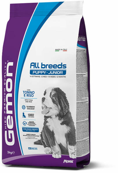 Kiszerelés: 15kg A GEMON ALL BREEDS KÖLYÖK & JUNIOR TONHALLAL ÉS RIZZSEL teljes értékű eledel minden méretű kölyökkutyának . -prebiotikumokkal, vitaminokkal -Hozzáadott mesterséges színezékek és tartósítószerek nélkül -yucca schidigera(pozitv hatással van az emésztésre, és csökkenti a széklet kellemetlen szagát) -gesztenye kivonat , ami E-vitamin-ban gazdag és ant