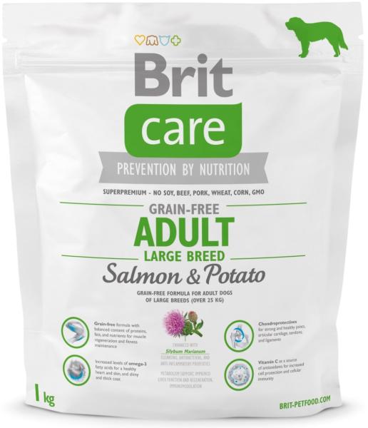 A Brit Care Grain-free Adult Large Breed Salmon & Potato egy teljes értékű prémium száraztáp felnőtt kutyusoknak. Kifejezetten nagytestű felnőtt kutyáknak kifejlesztett eledel. Ideális 25kg fölötti kutyáknak. - Gabonamentes receptúra. - Ínycsiklandó lazacos burgonyás ízkombináció. - Könnyen emészthető összetevők támogatják a kutyák emésztését. - A lazac jól em