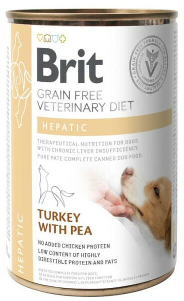 Brit Grain Free Veterinary Diet Dog Hepatic pulykával és borsóval 400g - Termékleírás A Brit Hepatic egy nedves eledel pulykával és borsóval, amely alkalmas fiatal, felnőtt és idősebb kutyáknak, akiknek májelégtelenségben, portális keringésben, máj encephalopathiában szenvednek. Mérgezésből lábadozó kutyák számára is alkalmas. Nem ajánlott kölyökkutyáknak, vemhes va