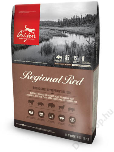 A ragadozók rendjébe (Carnivora) tartozó kutyának magas fehérje- és alacsony szénhidráttartalmú étrendre van szüksége, amelynek ki kell egészülnie kisebb mennyiségben gyümölcsökkel, zöldségekkel és jótékony hatású fűfélékkel, gyökerekkel. Az ORIJEN RED egy biológiai szükségleteknek megfelelő termék, tükrözi a Természet által biztosított tápanyagok változato