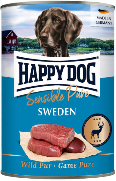 A Happy Dog Sweden Pur (Vadhúsos) konzerv egy ízletes, teljes értékű nedveseledel felnőtt kutyák számára. Monoproteines eledel. 100% vadhús. Egyfajta fehérjét tartalmaz, ezért kiváló választás eliminációs diétához. Tápláléktoleranciával, vagy allergiával küzdő kutyák is fogyaszthatják. Miért kiváló választás a Happy Dog Sweden Pur (Vadhúsos)? Kizárólag frissen