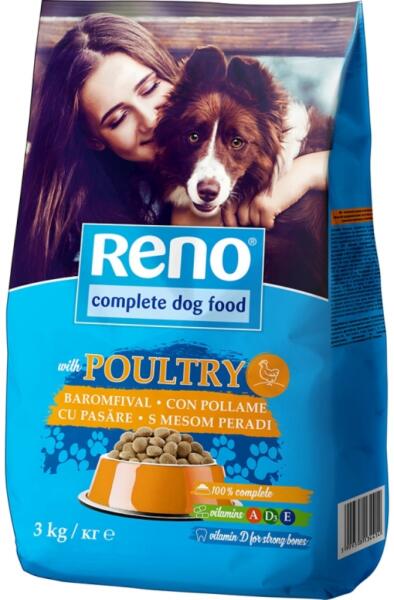 Reno Opti Life száraz kutyaeledel csirkével Összetétel: Gabonafélék*, hús és állati származékok (15%, melyből 4% baromfi), növényi eredetű származékok, olajok és zsírok, ásványi anyagok, zöldségek* (0,45% szárított borsó**). *Természetes összetevők és teljes kiőrlésű gabonafélék. **4% borsónak felel meg. Analitikai összetevők: Nyersfehérje 21,0% Zsírtartalom
