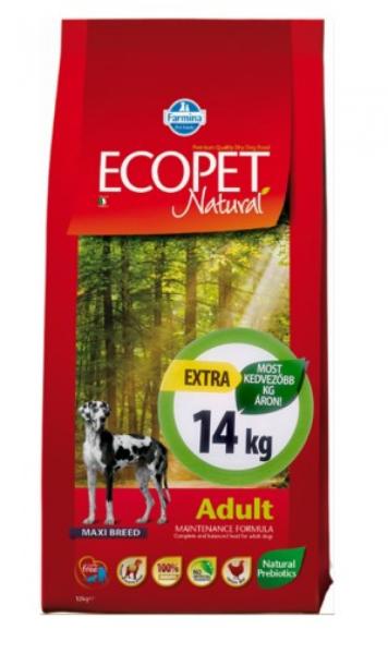 Termék részletekEcopet Natural Adult Maxi 14kg Az Ecopet Natural Adult Maxi 14kg egy teljes értékű, kiegyensúlyozott szárazeledel, amely kifejezetten a felnőtt, nagytestű kutyák számára készült. Az eledel biztosítja a kutyája számára szükséges tápanyagokat, miközben támogatja az egészségét, az energiaszintjét és a megfelelő izomzat fenntartását. A dehidratált csirkehús (22%) fő feh