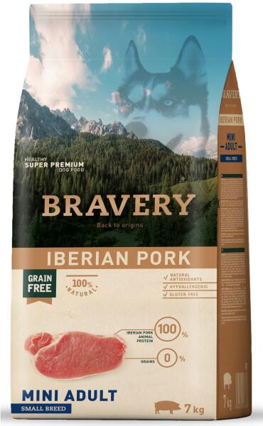 A Bravery Iberian Pork Mini Adult Small Breeds egy kiváló minőségű, hipoallergén és gabonamentes szárazkutyatáp, amely kifejezetten kistestű felnőtt kutyáknak szól. Az ibériai sertéshús, tápióka, halolaj, vitaminok és egyéb természetes összetevők gondosan kiegyensúlyozott kombinációja támogatja a kutya egészségét és jól-létét. A Bravery mindig természetes és mag