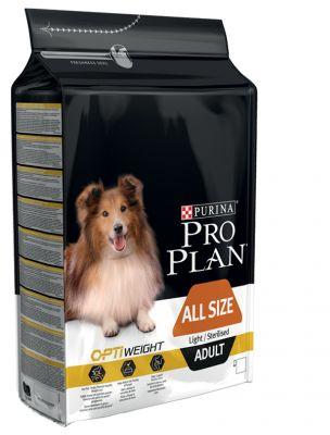 Purina PRO PLAN ADULT ALL SIZE Light-Sterilised teljes értékű eledel minden fajtájú, túlsúlyban szenvedő vagy rá hajlammal rendelkező felnőtt kutya részére. Ezen kívül az eledel speciálisan kialakított ivartalanított és kasztrált kutyák számára. segít a megfelelő izomzat megtartásában a súly csökkentésénél, ivartalanítás / kasztráció után kiváló minőségű