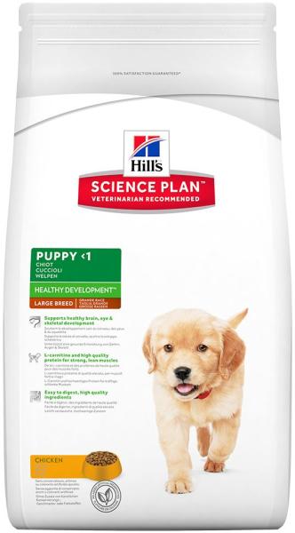 A Hill's Science Plan Puppy Large Breed száraz kutyatáp egy tökéletesen kiegyensúlyozott táplálék a nagytesű kölyökkutyák csontozatának egészséges fejlődéséért klinikailag bizonyított hatású antioxidánsokkal és optimális mennyiségű ásványi anyaggal. 1 éves korig. Alkalmazási javaslatok:- Nagytestű fajták kölykeinek (felnőtt korban 25 kg fölött) az elválasztás