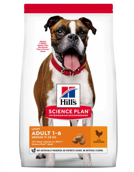 A hízásra hajlamos kutyák profitálhatnak a speciálisan az igényeiknek megfelelően kifejlesztett táp jótékony hatásaiból. A Hill's Science Plan Adult 1-6 Light Medium csirke kalóriacsökkentett száraz eledel közepes termetű, felnőtt ebek számára, ami segíthet abban, hogy kedvence megőrizze ideális testsúlyát. Kiválóan alkalmas kevésbé aktív négylábúak számára. Fino