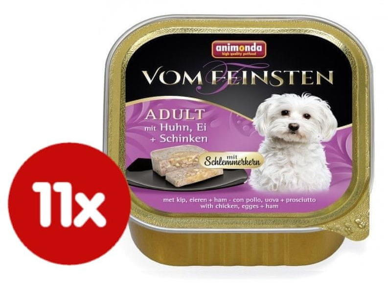 Gyártó: Animonda Modell: Vom Feinsten Stuffed Chicken & Egg & Ham 150 g Leírás: Animonda Vom Feinsten Stuffed Csirke Tojás Sonkával – Prémium minőségű nedvestáp ízletes töltelékkel: csirke és tojás darabok sonkával, felnőtt kutyák részére. Ajánlott a kifejezetten válogatós vagy elkényeztetett kutyának is. Az Animonda Vom Feinsten Stuffed nedvestápjai ízletes p