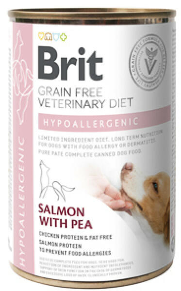 Brit Grain Free Veterinary Diet Dog Hypoallergén Lazac és borsó 400g - Termékleírás A Brit Veterinary Diet Hypoallergenic egy kiegyensúlyozott diétás nedves eledel, amelyet az ételallergiák és -intoleranciák okozta bőrgyógyászati és gasztroenterológiai problémákkal küzdő kutyáknak szántak. Összetétel Lazac (85 %) Víz (6 %) Zöldborsó (4 %) Lazacolaj (3 %) Ásványok Sz