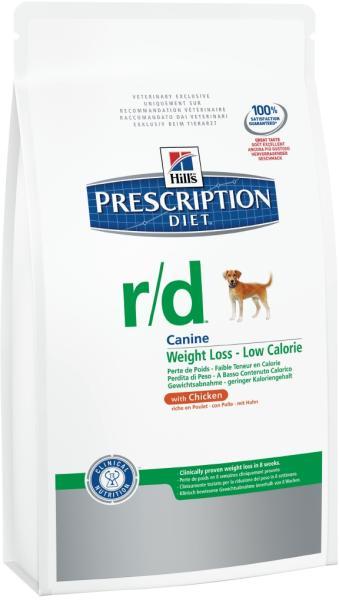A Hill's Prescription Diet r/d Weight Reduction száraz kutyatáp kevés zsírt és sok rostot tartalmazó táp, amely klinikai vizsgálatban bizonyította, hogy már 2 hónap alatt 22%-kal csökkenti a testzsírt. Különleges formula, amely kielégíti a kutya étvágyát, miközben súlyt veszít. Mielőtt állatgyógyászati diétás száraz- vagy nedves tápot ad kedvencének, mindenképpen k