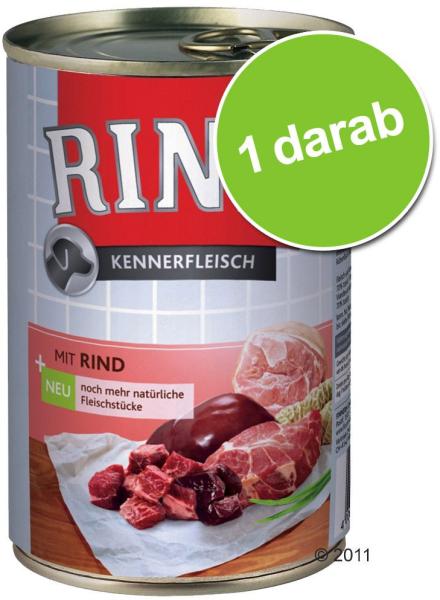 FN91040 -RINTI DOG KENNERFLEISCH KONZERV BORJÚ 400G EAN: 4000158910400 Teljes értékű eledel felnőtt kutyák részére. Összetevők: Borjú (25%), színhús, máj, bőr, tüdő, lenolaj, réparost (0,2%). Beltartalom: fehérje 10,0 %, nyerszsír 8,0 %, nyersrost 0,6 %, hamu 2,5 %, kalcium 0,3 %, foszfor 0,25 %, nedvesség 78.0 %, D3-vitamin 200 NE/kg, E-vitamin 20 mg/kg, cink (mint cink-oxid)