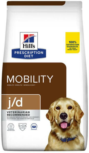 Hills Prescription Diet Canine j/d Joint Care – A Hill's Prescription Diet j/d Joint Care száraz kutyatáp klinikailag bizonyítottan segíti a kutyákat a járás, futás, játszás, lépcsőzés feladataiban az ízületi fájdalom enyhítésével és a porcok egészségének megőrzésével. A változás 21 nap alatt látható.