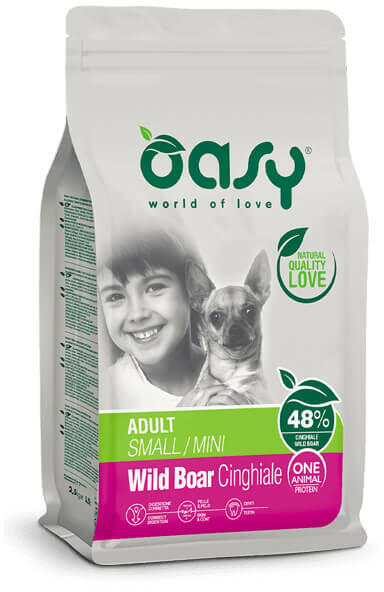 Teljes értékű eledel kis- és mini testű felnőtt kutyák számára egy éves kortól. A 48% vaddisznóhúst, mint egyetlen állati fehérjét tartalmazó eledel ideális felnőtt kutyák számára, különösen azoknak, akik ételintoleranciában, bél- vagy bőrérzékenységben szenvednek. Összetétel: friss vaddisznó 30%, rizs, dehidratált vaddisznó 15%, borsó, állati zsír, hidroliz