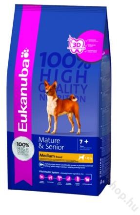 Termék részletekitálanyagokban gazdag száraz táp 7-10 éves, kis- és közepes termetű kutyáknak. Kiegyensúlyozott receptúra friss csirkével, kalciummal és glükozaminnal. Korábban: Mature & Senior Medium Breed. Az Eukanuba 10 éves megfigyelései azt mutatják, hogy a kutyák átlagon felüli magas életkort is elérhetnek: Hűséges társa rászolgál arra, hogy az átlagnál hosszabb élet előny
