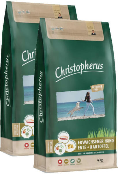 Teljes értékű gabonamentes eledel kis és közepes testméretű felnőtt kutyák részére. Összetétel: kacsafehérje* (20%), burgonya* (20%), zöldborsó* (20%), alma* (15%), baromfizsír, zöldborsó fehérje* (5%), hidrolizált kacsafehérje (2%), lazacolaj (2%), élesztő, spenót* (2%), pasztinák* (2%), lenmag, ásványi anyagok, hínár*, gyógynövények* (0,5%), hidrolizált rákhéj