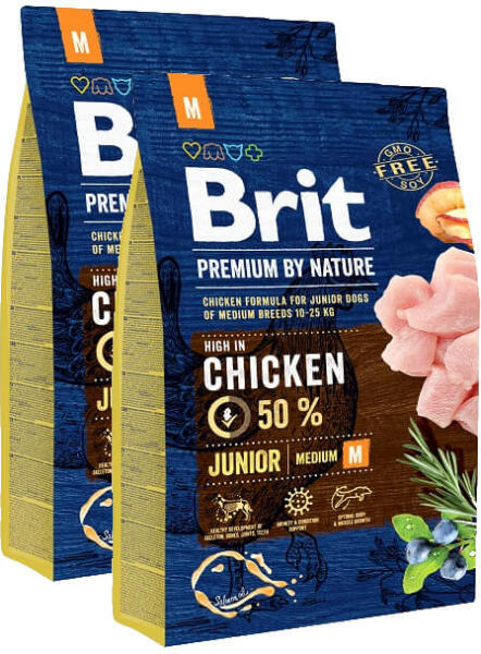 Brit Premium by Nature Junior Medium száraz kutyatáp Brit Premium by Nature Junior Medium Breed — teljes értékű, csirkehús alapú száraztáp közepes testű kölyökkutyáknak, 8 hetestől 15 hónapos korig ajánlott. Szintén alkalmas terhes és szoptatós szukáknak. A Brit Premium by Nature egy kiváló minőségű, energiában gazdag, akár 45-50%ban csontozott csirkehúst tartalmazó