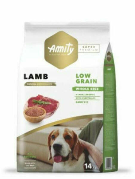 Amity Adult Hypoallergenic Lamb 14kg Szuperprémium hipoallergén száraztáp bárányhússal és barna rizzsel minden testméretű felnőtt érzékeny gyomrú, vagy ételintoleranciával küzdő kutya számára. Bárányos kutyatáp Amity Adult Hypoallergenic Lamb ( bárányhússal és barna rizzsel ) száraztáp felnőtt kutyák részére ) Az Amity Hypoallergén termékek speciális formulájuk