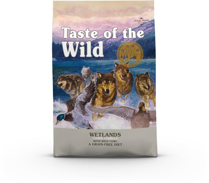 Taste Of The Wild Wetlands 12.2kg - Termékleírás Szárazeledel minden kutyafajta számára, kacsa ízesítéssel, csirkével, tengeri hallal, sült fürjjel, füstölt pulykával, zöldségekkel és gyümölcsökkel. Ez a gabonamentes kutyatáp zöldborsóval és édesburgonyával rendkívül hatékony energiaforrás a nagy aktivitású kutyák számára. Gyakorlatilag az állat egész életéb