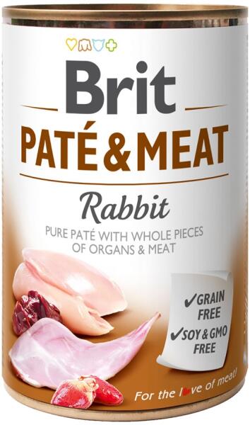 A Brit Paté & Meat Nyúl teljes értékű, nedves eledel felnőtt kutyáknak. A Brit Paté & Meat egy különleges kutyakonzerv, amely valódi húsdarabokat és pástétomba darabolt belsőségeket tartalmaz. A Brit Paté & Meat segíti a táplálékfelvételt és a folyadékigény kielégítését. Fontos, hogy tudd: ez a termék mentes a gabonától, a szójától és GMO-tól, így
