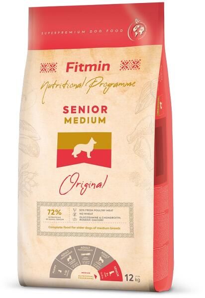 Szuper prémium minőségű teljes értékű eledel aktív antioxidáns komplexszel idősebb, közepes fajtájú, 9 évesnél idősebb kutyák számára. Anyagcsere-energia: 3740 kcal/kg, 15,63 MJ/kg. A Fitmin dog Medium Senior kifejezetten az idősebb, közepes fajtájú kutyák számára készült eledel. Az idősebb kutyák már nem túl aktívak, mivel fizikai kondíciójuk természetes módon