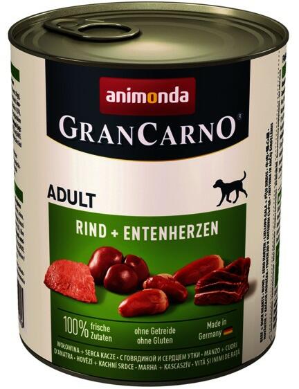 Animonda GranCarno Adult konzerv, marha és kacsaszív teljesértékű eledel felnőtt kutyáknak. A kutya köztudottan a farkas leszármazottja. Tizenötezer emberek oldalán töltött év alatt a kutyák jelleme és kinézete rendkívüli változáson ment keresztül. Ezzel ellentétben a táplálkozási szokásaik és igényük a friss állati eredetű nyersanyagokra változatlan maradt. A Gran