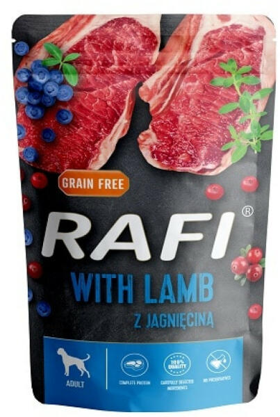 Dolina Noteci Rafi bárányhús 500g - Leírás Teljes értékű eledel bárányhússal minden fajta felnőtt kutyának. A bárányhús egészséges fehérje, B-vitaminok és számos értékes mikro- és makroelem forrása, amelyek meghatározzák a szervezet megfelelő működését. Az n-3 és n-6 családba tartozó zsírsavak támogatják a természetes immunitást és részt vesznek az anyagcs