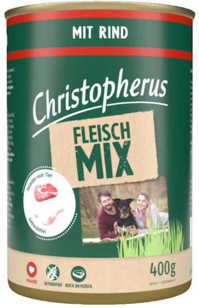 Christopherus Dog konzerv meat mix marha 400g Egy biztos: a kutyák szeretik a húst. Éppen ezért a Christopherus húskeverékek sok friss húsból készülnek. A válogatott alapanyagok, mint a baromfi-, bárány-, lazac-, marha- vagy vadhús, és ezek gondos elkészítése teszik ezt az ételt egészségessé, könnyen emészthetővé, ezáltal ízletessé. Christopherus Dog konzerv meat mix m