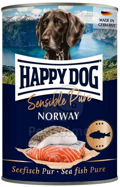A Happy Dog Sensible Pure Norway prémium nedves kutyaeledel a tiszta természettel tölti meg kutyája tálját. Kiváló minőségű nedves eledelünk 100%-ban értékes fehér halakból (sima lepényhal és tőkehal) és finom lazacból készül, és fontos vitaminokat és ásványi anyagokat tartalmaz. A nedves eledel természetes módon, szója és egyéb növényi eredetű adalékanyagok né