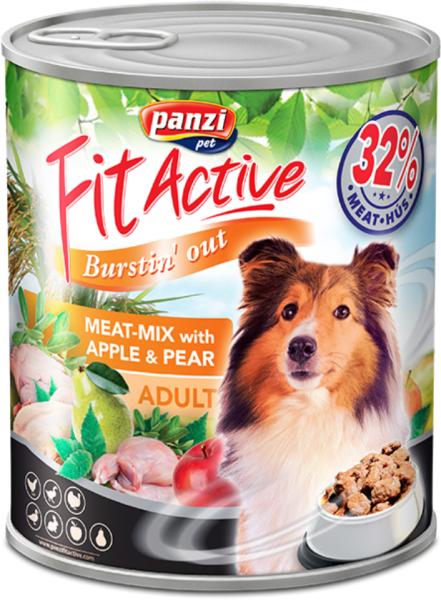 A Panzi FitActive Adult Dog konzerv változatos húsokkal, egy teljes értékű konzerv eledel felnőtt kutyák számára. A tápban lévő többféle fehérjeforrás (csirke, liba, pulyka, kacsa, nyúl) segít változatossá tenni a kutyusok étrendjét, ami minden szempontból hasznos. A könnyen emészthető húsok kombinációja nem terheli le a kutyák emésztőrendszerét. 32%-os hústar