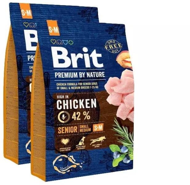 Brit Premium by Nature Senior Small/Medium száraz kutyatáp Teljes értékű száraztáp csirkével, 7 évnél idősebb, kis és közepes termetű kutyáknak. A Brit Premium by Nature professzionálisan összeállított beltartalma és kiegyensúlyozott tápanyagösszetétele garantálja a száraztáppal táplált kutyák egészségét és megelégedettségét. Tekintettel a kutyaeledel fokozott