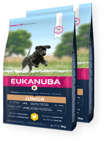 EUKANUBA JUNIOR LARGE Teljes értékű és kiegyensúlyozott beltartalmi értékű táp nagy és óriás testű fajták kölykei számára. Elősegíti az ízületek és a csontozat optimális növekedését a nagy testű kölyökkutyáknál. A CSIRKE AZ ELSŐDLEGES FEHÉRJEFORRÁSUNK KIVÁLÓ MINŐSÉGŰ ÖSSZETEVŐK VEZETŐ AZ EGYEDI TÁPLÁLKOZÁSTUDOMÁNY TERÉN Mesterséges aromák és színe