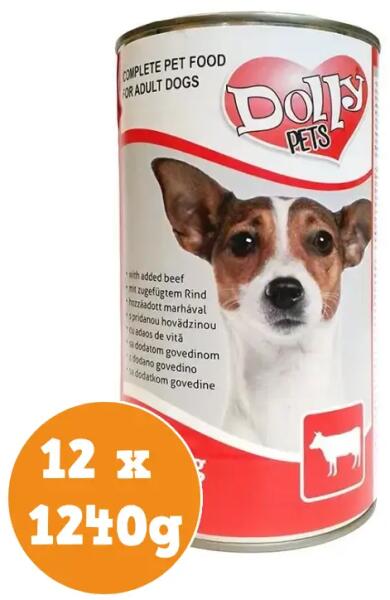 Dolly Dog Konzerv MarhávalTeljes értékű állateledel felnőtt kutyák számára marhával. Etetési javaslat:Tálalja szobahőmérsékleten! A nyitott dobozt hűtőben tárolja és 2 napon belül használja fel! Csak takarmányozási célra! Tárolás: száraz, hűvös helyen.