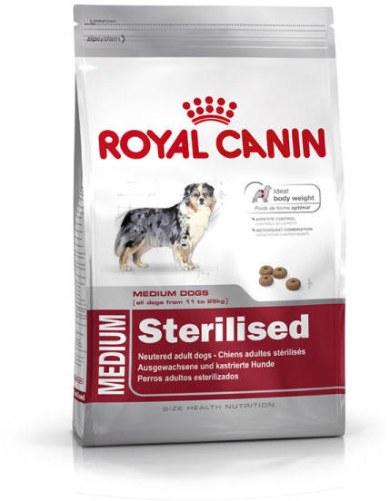 Termék részletekSZÁRAZTÁP Teljes értékű táp ivartalanított, felnőtt kutyáknak, közepes testű fajták számára (11-25 kg). 12 hónapos kortól. Hízásra való hajlam esetén. IDEÁLIS TESTSÚLY A MEDIUM STERILISED segít fenntartani az ivartalanított kutyák ideális testsúlyát, a megfelelően megválasztott napi adagnak és megemelt fehérjeszintet (28%), alacsony zsírtartalmat (13%) és L-karnit