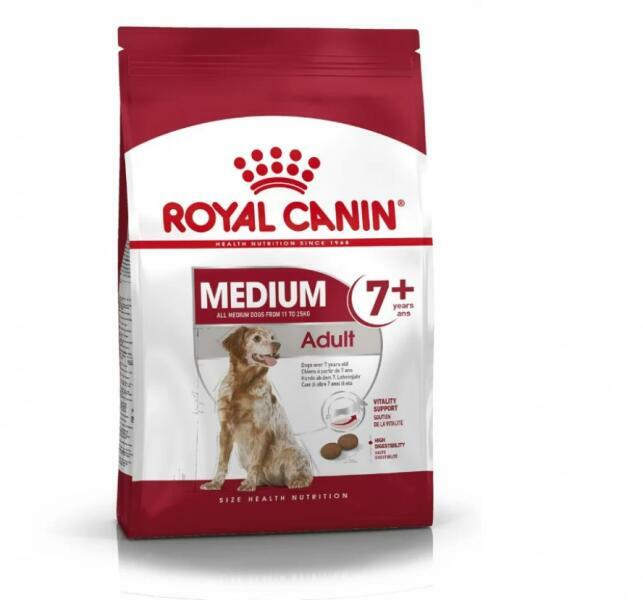 Termék részletekKözepes testű fajták számára - 7 éves kor felett. Royal Canin Száraz Kutyaeledel SHN Medium Adult 7+ Teljes értékű táp idős kutyáknak, közepes testű fajták számára (11-25 kg közötti testtömeg) - 7 éves kor felett. Hét éves kortól már jelentkezhetnek kutyáján az öregedés első jelei. Az öregedés a vesét, ízületeket az emésztőrendszert és a természetes ellenál