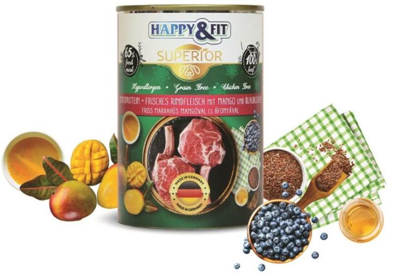 Termék részletekPrémium kutyaeledel friss marhahússal, mangóval és áfonyával, természetes összetevőkből, mesterséges adalékanyagok nélkül. Tápláló és könnyen emészthető, ideális minden korosztályú kutyának. Segít kutyád egészségének megőrzésében és energikus mindennapjaiban. Lépj a prémium kutyaeledelek világába, és kényeztesd kutyádat a Happy&Fit Superior Dog Konzerv