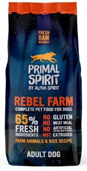 A Primal Spirit Dog egyedülálló egészséges eledel mindenféle felnőtt és idősebb kutya számára magas szabadon tartott csirkehús tartalommal, hidrolizált rizzsel, gyümölcsökkel és zöldségekkel kiegészítve. Az eledel alacsony gabonatartalmú 65% szabadon tartott csirkét tartalmaz Andalúzia tartományában, valamint friss egész atlanti halat 2 kg friss hús és hal került fel