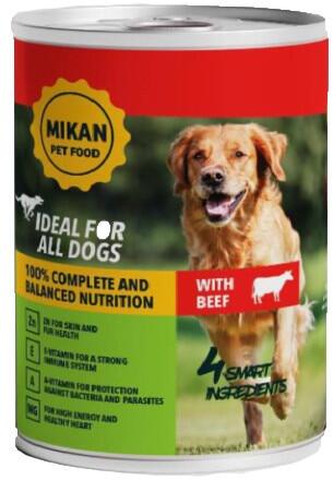 A Mikan Can Beef ideális minden kutya számára. A nedves eledel a kutyának naponta adott száraztáp kiegészítésére ajánlott. 100%-ban teljes értékű és kiegyensúlyozott táplálék. Zn a bőr és a szőrzet egészségéért, E-Vitamin az erős immunrendszerért, A-vitamin a baktériumok és paraziták elleni védelemért, illetve Mg a magas energiáért és az egészséges szívért.