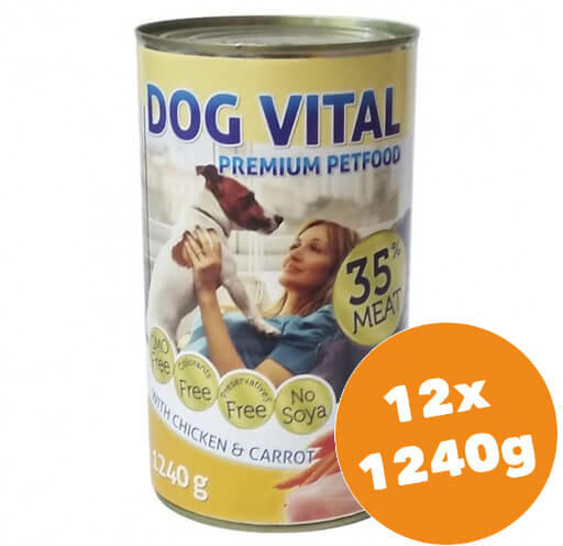 Szaftos darabok ízletes mártásban, csirkével és répával. Teljes értékű eledel felnőtt kutyák részére. Ez a nedves eledel kiváló választás a felnőtt kutyák számára, mely csirkével és répával teli szaftos darabokat kínál ízletes mártásban, hogy megfeleljen házi kedvenced táplálkozási igényeinek. Miért válaszd a Dog Vital Chicken&Carrot konzervet? Az eledel A