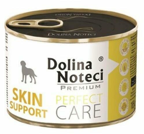 Dolina Noteci Premium Perfect Care Skin Support 185g - Termékleírás Teljes értékű nedves eledel minden fajta felnőtt kutyák számára a bőrgyógyászati problémák kezelésének és megelőzésének támogatására. Ez a speciális nedves kutyaeledel olyan kutyáknak készült, akiknek bőrproblémái vannak: túlzott vedlés, törékeny szőrzet, korpásodás, viszketés, valamint azokn