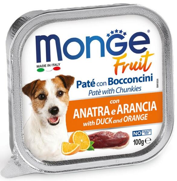 Összetevők: Friss hús 80% (kacsa min. 10%), narancs (4%), ásványi anyagok, vitaminok. Analitikai összetétel: Nyersfehérje 8,5%, Nyersrost 0,5%, Nyerszsír 7,0%, Hamu 2,2%, Nedvesség 80%. Tápéréték (/kg): Vitamin A 3000, Vitamin D3 400 NE, Vitamin E 15 mg. Sűrűsítő és zselésítő anyagokat tartalmaz. Felhasználási javaslat: Közepes méretű (10 kg) kutyák számára minimum 40