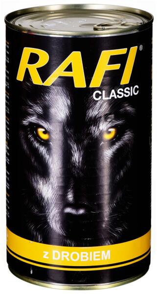 Dolina Noteci Rafi Classic baromfival 1240g - Leírás Teljes értékű eledel minden fajta felnőtt kutyának baromfival. A Rafi Classic nedves kutyaeledel teljesen kiegyensúlyozott, ízletes eledel, amely megfelelő mennyiségű vitamint és ásványi anyagot biztosít. A Rafi Classic teljes értékű eledel minden fajta felnőtt kutyának. Az összetétel megfelel a felnőtt kutyák speciális