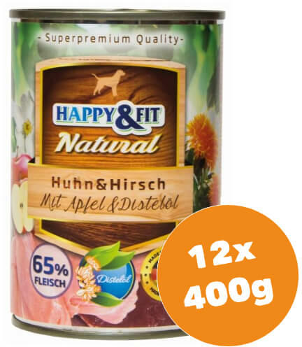 Natural Huhn&Hirsch mit Apfel&Distelöl Teljes értékű nedves eledel felnőtt kutyák részére csirkéből és szarvasból, almával és sáfrányos szekliceolajjal Videós termékismertető! Nézze meg a HAPPY&FIT Natural konzerveket, ahol láthatja milyen gazdag, húsokkal teli falatkákat ehet Kedvence! https://www. youtube. com/watch?v=MhIt9jgjEcc Milyen típusú kutyának aján