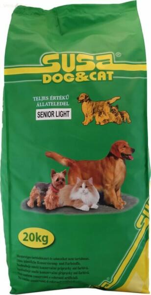 A Susa Senior&Light egy teljes értékű, csirkés száraztáp idős vagy túlsúlyos kutyáknak. Csökkentett energia tartalmú isteni eledel. Ideális 7 éves kor felett. A Susa kutyatápok koncepciója és receptúra kialakításánál az emészthetőség a legfontosabb. Válogatott jól emészthető összetevők teszik ínycsiklandóvá a tápokat. A Senior&Light táp jellemzői: - Cs