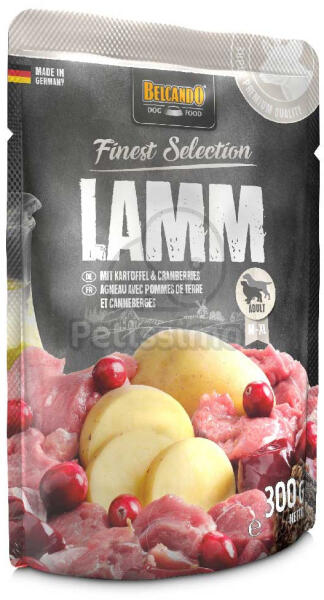 Jellemzők: - Kiváló receptúrák egy etetési méretben csomagolva. - Szaftos, finom hozzávalókkal ízesített, kíméletesen főzött hús, tasakba kiporciózva. - A hidegen sajtolt bogáncsolaj létfontosságú telítetlen zsírsavakat ad hozzá. - A BELCANDO® FINEST SELECTION rendkívüli ízletességének és hasznosíthatóságának köszönhetően kiváló az érzékeny és válogatós