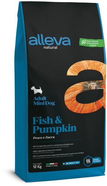 Alleva Natural természetes eledel alacsony gabonatartalommal, tengeri hallal és sütőtökkel, kis felnőtt kutyák számára megfelelő. a sütőtök, az inulin, a FOS, és a MOS rostforrások segítik a bélmikroflóra megfelelő működését monoprotein eledel -egyféle állati eredetű fehérjeforrást tartalmaz a magas Omega-3 tartalom segít megőrizni a bőr egészségét a glükozamin