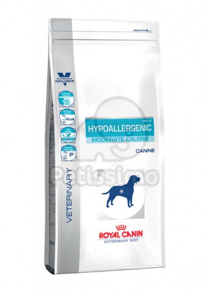 Termék részletekA Royal Canin Hypoallergenic HME 23 Moderate Calorie egy kutyák számára készült teljes értékű diétás táp, amely összetétele folytán csökkenti bizonyos tápösszetevőkkel és tápanyagokkal szemben kialakult érzékenységet. Javallatok: Az alkalmazás előtt javasolt állatorvos véleményét kikérni. A HYPOALLERGENIC MODERATE CALORIE táp alkalmazása 3-8 héten keresztül javaso