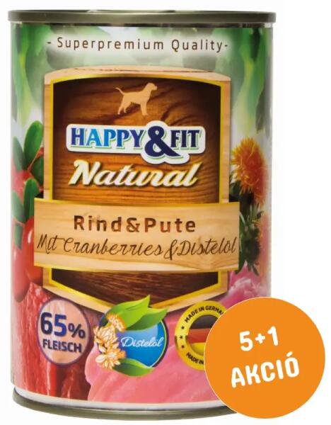 Natural Rind&Pute mit Cranberries&Distelöl Teljes értékű nedves eledel felnőtt kutyák részére, marha- és pulykahúsból áfonyával és sáfrányos szekliceolajjal. Videós termékismertető! Nézze meg a HAPPY&FIT Natural konzerveket, ahol láthatja milyen gazdag, húsokkal teli falatkákat ehet Kedvence! https://www. youtube. com/watch?v=MhIt9jgjEcc Milyen típusú kutyának